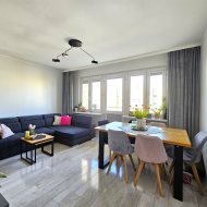 Składa się z trzech pokoi, oddzielnej kuchni z oknem, łazienki z wanną i kabiną prysznicową oraz pralką i suszarką, oddzielnego WC oraz korytarza z dużą garderobą. Z salonu wyjście na duży balkon. Ogrzewanie i ciepła woda z sieci miejskiej. Mieszkanie ciepłe środkowe. Co roku występują duże zwroty z tytułu ogrzewania. W pokojach na podłodze panele. W łazience, WC i kuchni kafle. Do mieszkania przynależy piwnica. Dodatkowo w budynku jest dostępna suszarnia i rowerownia.