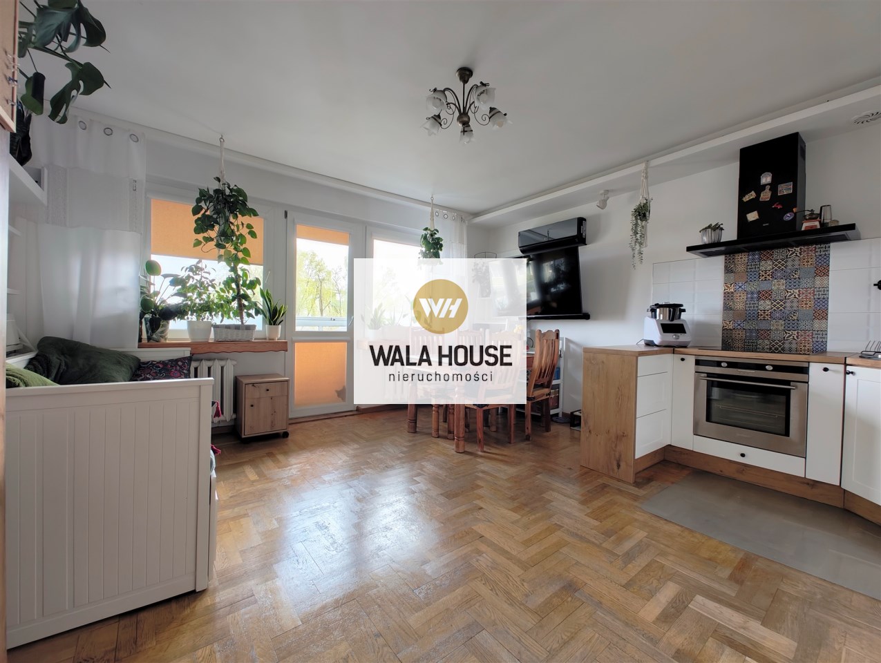 • salon z aneksem kuchennym + 3 pokoje