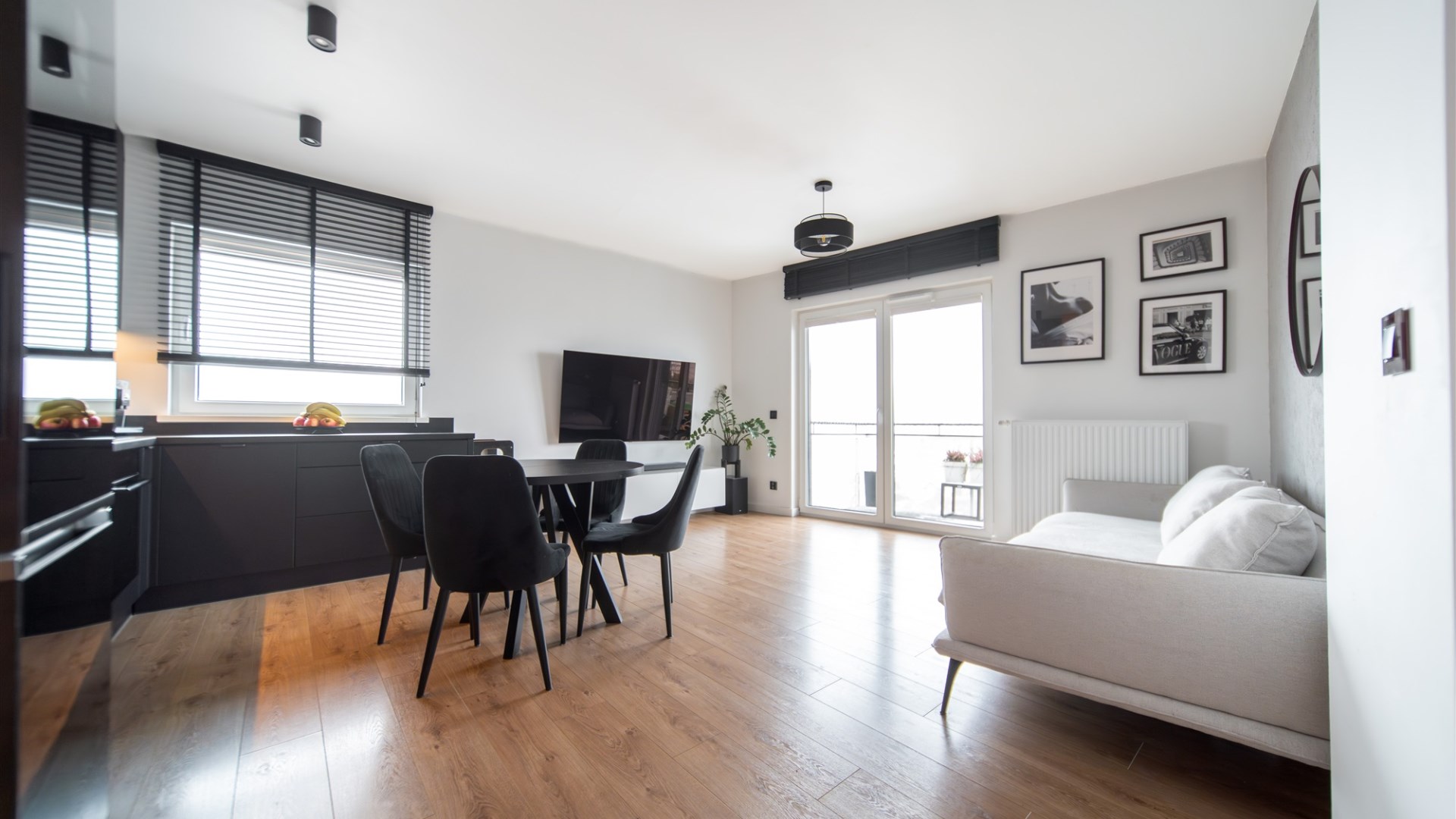Nowoczesne oświetlenie, spore poczucie przestrzeni, zabudowy prawidłowo wykorzystujące oferowaną przestrzeń.