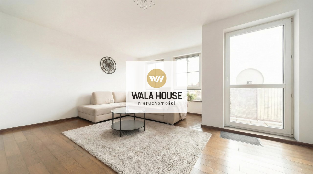 Wnętrze jest jasne i przytulne, a drewniana podłoga w kolorze ciemnego orzecha nadaje mieszkaniu elegancki charakter. Balkon stanowi dodatkową przestrzeń do wypoczynku.