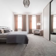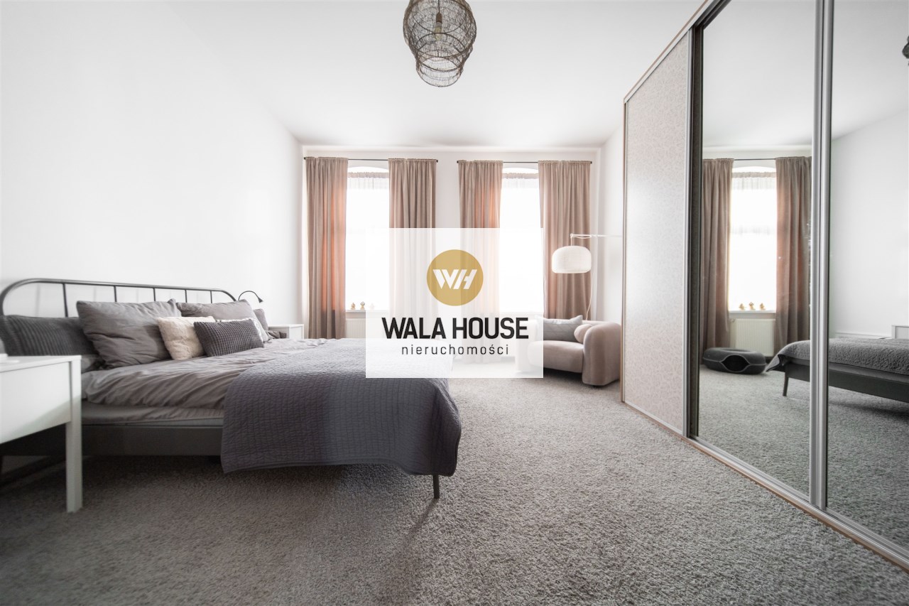 Wysoko, duże poczucie przestrzeni, dużo słońca. Przytulna sypialnia z głęboką wykładziną, zabudową oraz łóżkiem. Salon z jadalnią, częścią wypoczynkową oraz wyjściem na duży balkon. Trzeci pokój stanowi pracownia - ten pokój posiada drugą, prywatną łazienkę. Kuchnia z szerokim blatem oraz barkiem. Łazienka główna z dużą wanną. Widny oraz szeroki przedpokój.