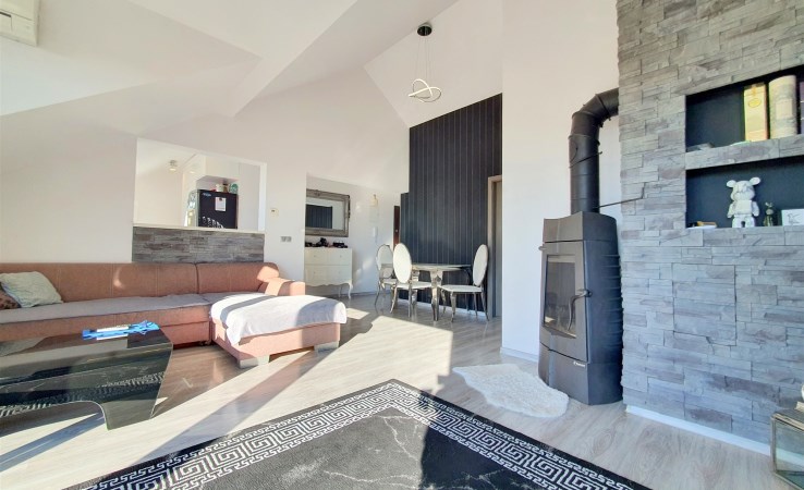 Na powierzchnię mieszkania składa się kuchnia w zabudowie , wyposażona w sprzęt AGD - pralka, suszarka, zmywarka, kuchenka, okap, piekarnik. Wydzielona jadalnia , oraz salon z wyjściem na taras i do ogrodu. Łazienka razem z wc, gdzie znajduję się wanna, toaleta, oraz miejsce gdzie znajduję się piec gazowy- dwuobiegowy.