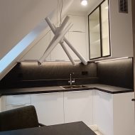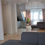 Podczas remontu użyto wysokiej jakości materiałów renomowanych marek, wymieniono instalację elektryczną, wyrównano ściany oraz zamontowano nowoczesny klimatyzator, zapewniający komfortowe warunki przez cały rok. W chwili obecnej rozpoczęte prace związane z wykonaniem zabudowy meblowej kuchni i łazienki. Projekt jest gotowy a koszt zabudowy i towarzyszącego jej sprzętu AGD został uwzględniony w cenie 870tys.