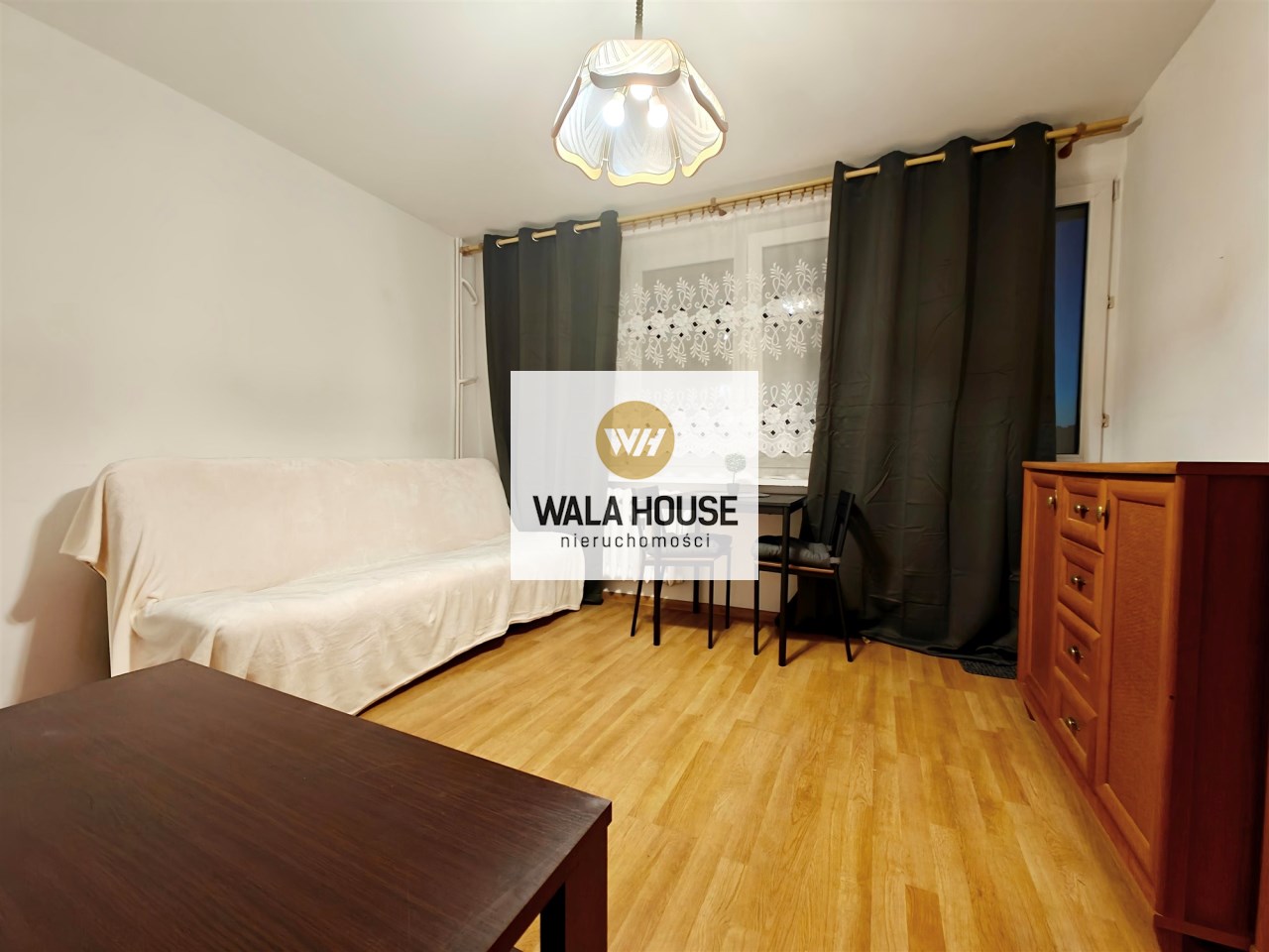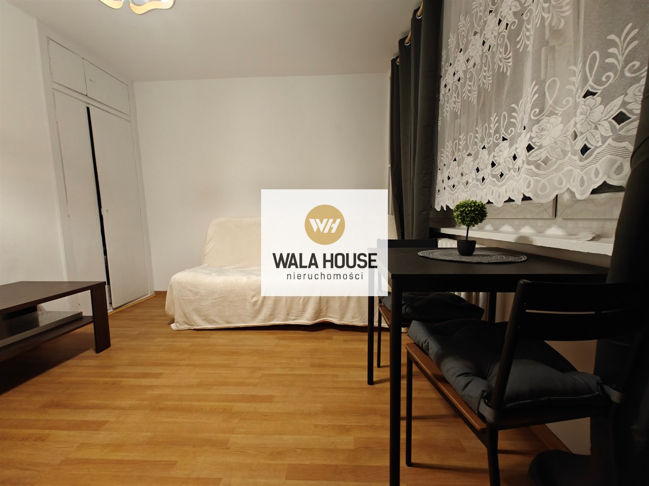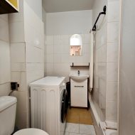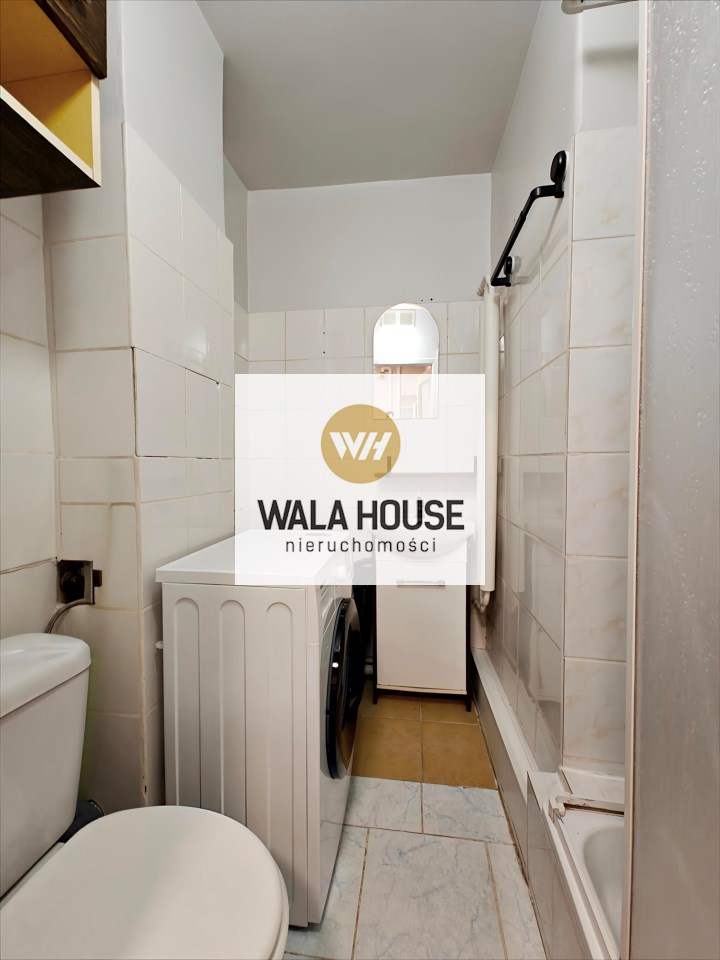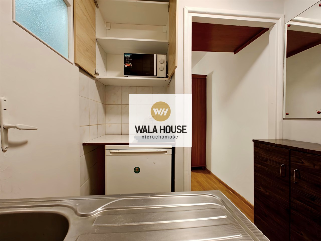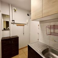 Układ pomieszczeń obejmuje: pokój dzienny z wyjściem na balkon (ok. 2,2 m²), aneks kuchenny oraz łazienkę z prysznicem i WC. Mieszkanie jest w pełni umeblowane i wyposażone: rozkładana kanapa, stół z dwoma krzesłami, szafa w zabudowie, komoda, nowa pralka, lodówka, mikrofalówka oraz nowe meble kuchenne.