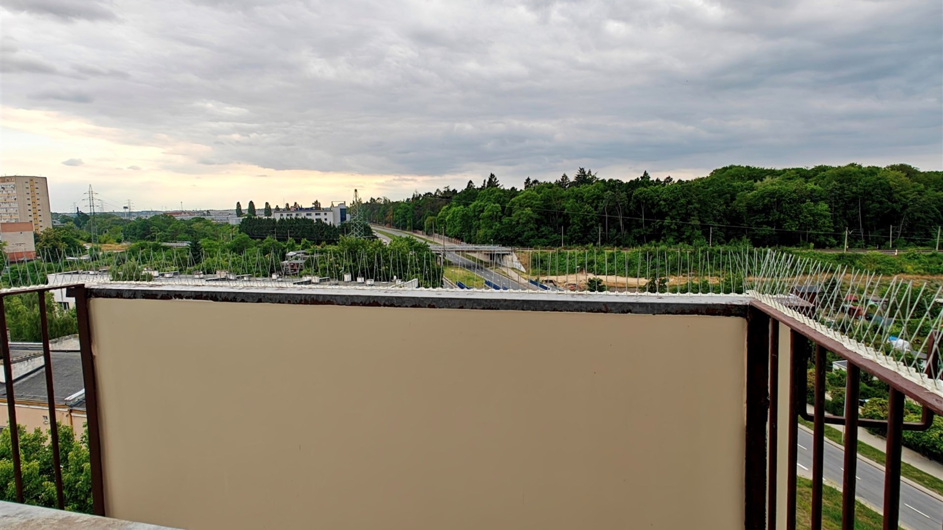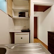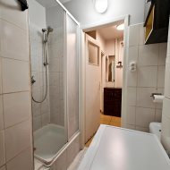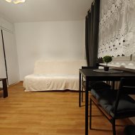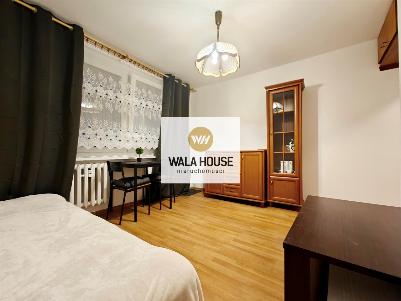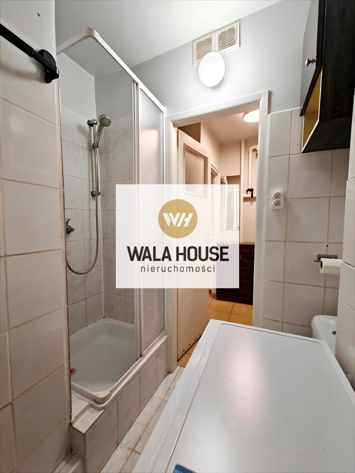Układ pomieszczeń obejmuje: pokój dzienny z wyjściem na balkon (ok. 2,2 m²), aneks kuchenny oraz łazienkę z prysznicem i WC. Mieszkanie jest w pełni umeblowane i wyposażone: rozkładana kanapa, stół z dwoma krzesłami, szafa w zabudowie, komoda, nowa pralka, lodówka, mikrofalówka oraz nowe meble kuchenne.