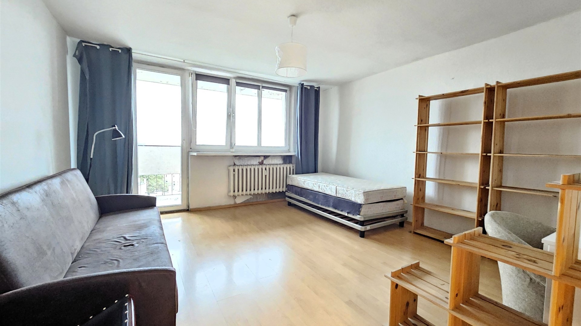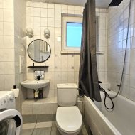 Składa się z dwóch pokoi, oddzielnej kuchni z oknem, łazienki z wanną, umywalką, pralką i WC oraz przedpokoju. Z salonu wyjście na duży balkon. Ogrzewanie i ciepła woda z sieci miejskiej. Mieszkanie słoneczne, ciepłe środkowe. Nieruchomość częściowo wyposażona i meblowana. Kuchnia z oknem wyposażona w szafki, lodówką oraz kuchenką. Czynsz najmu 1800zł + 870zł czynsz do zarządcy + liczniki. Wolne od zaraz.