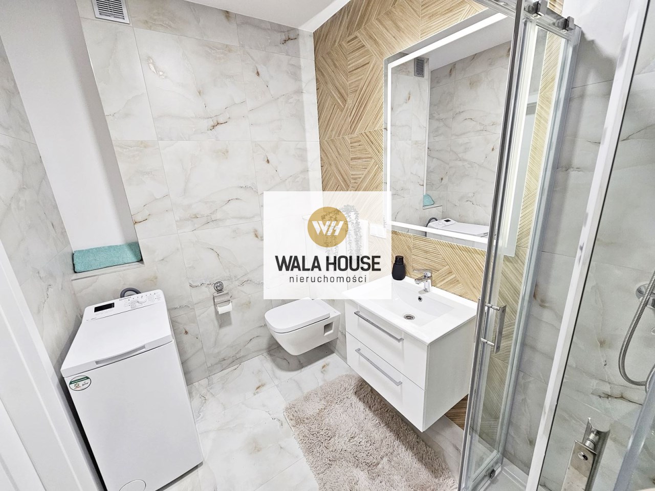 | Wyposażenie łazienki | kabina prysznicowa, lustro, natrysk, pralka, prysznic, umywalka, WC |