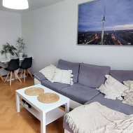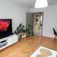 Mieszkanie składa się z pokoi 19/9m2, holu 7m2, oddzielnej kuchni 7m2, łazienki z WC 3,6m2 i przynależnej piwnicy. Koszty utrzymania- czynsz do spółdzielni liczony ostatnio na 2 osoby (w tym zaliczki na wodę, ogrzewanie, usuwanie nieczystości, fundusz remontowy) około 785zł. Łączne koszty dla najemcy obejmują cenę najmu+ opłaty do spółdzielni, prąd i gaz.