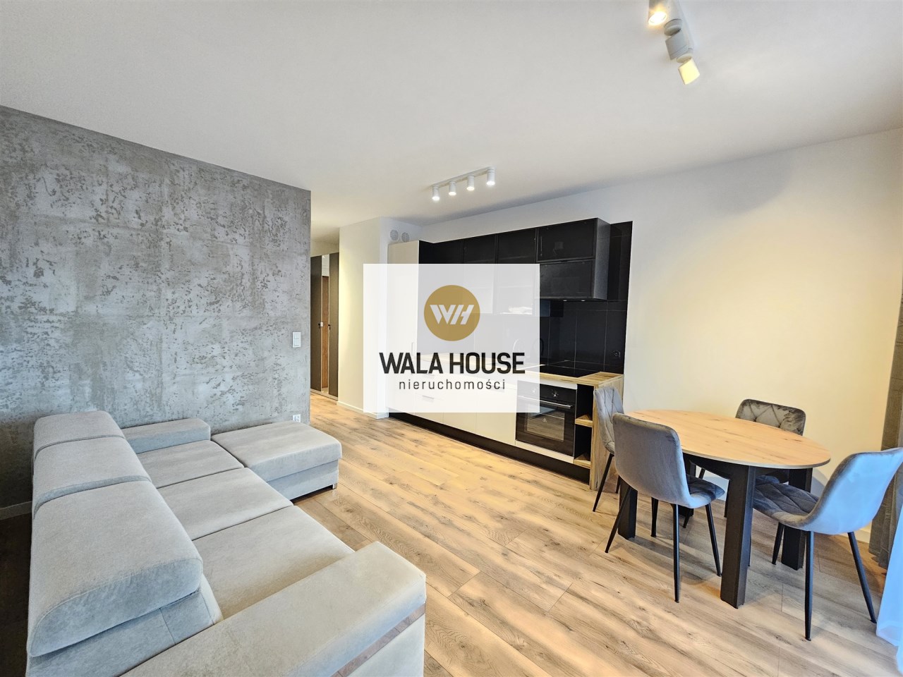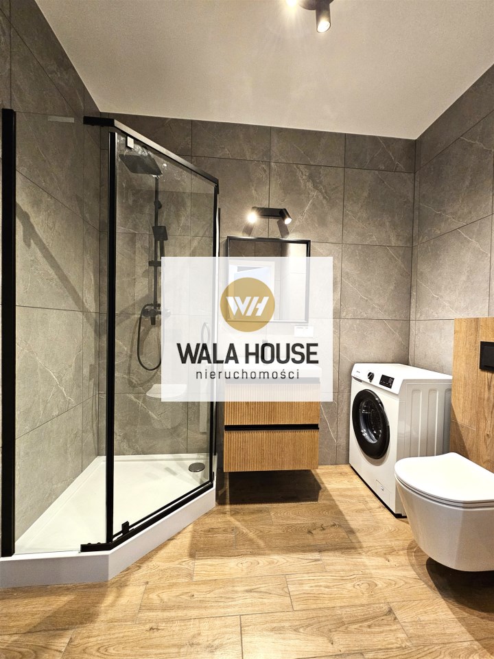 Składa się z dużego pokoju z aneksem kuchennym, łazienki z WC oraz holu z szafą. W mieszkaniu ściany wygładzone i pomalowane. Łazienka w nowoczesnej glazurze i terakocie. Mieszkanie jest w umeblowane i wyposażone w sprzęt AGD i RTV: pralkę, zmywarkę, lodówkę płytę indukcyjną, piekarnik, pochłaniacz oraz telewizor. Ogrzewanie i ciepła woda z sieci miejskiej.