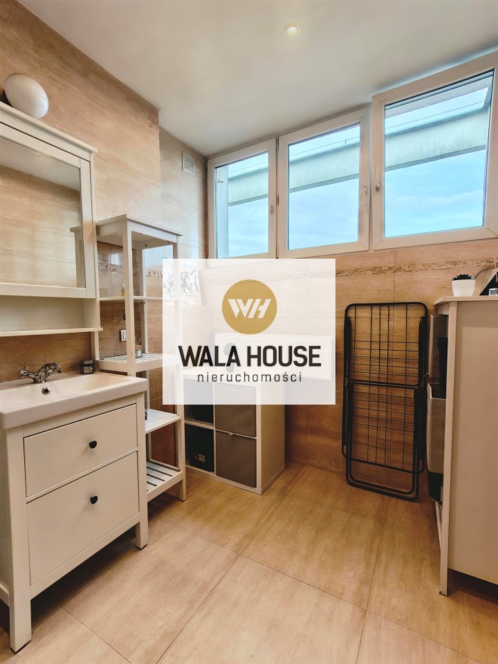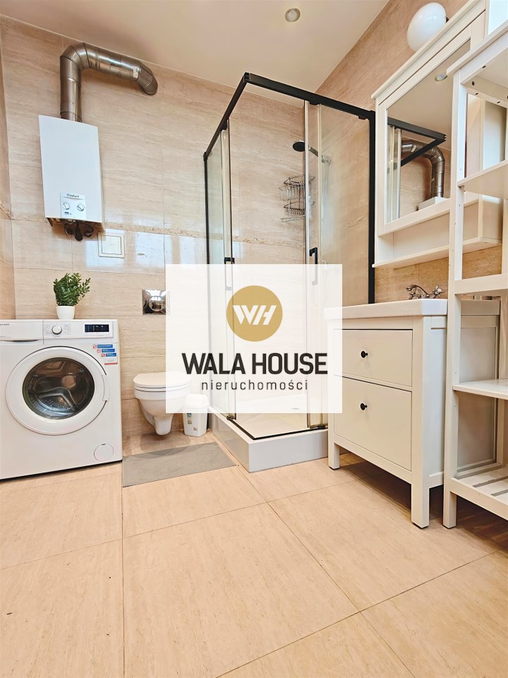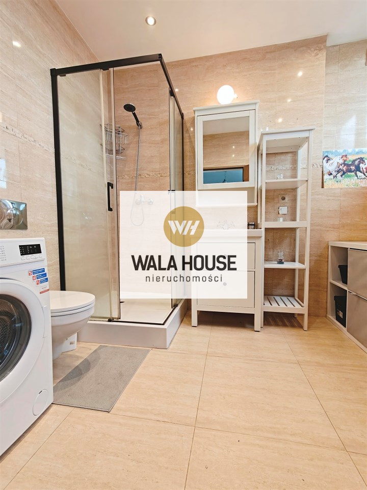 | Wyposażenie łazienki | pralka, lustro, WC, prysznic, umywalka na szafce |