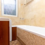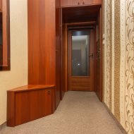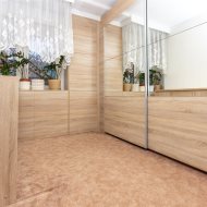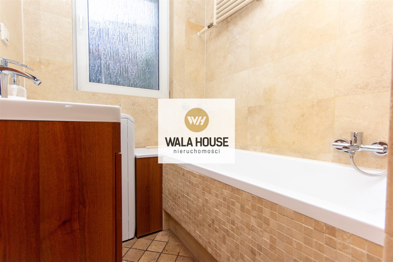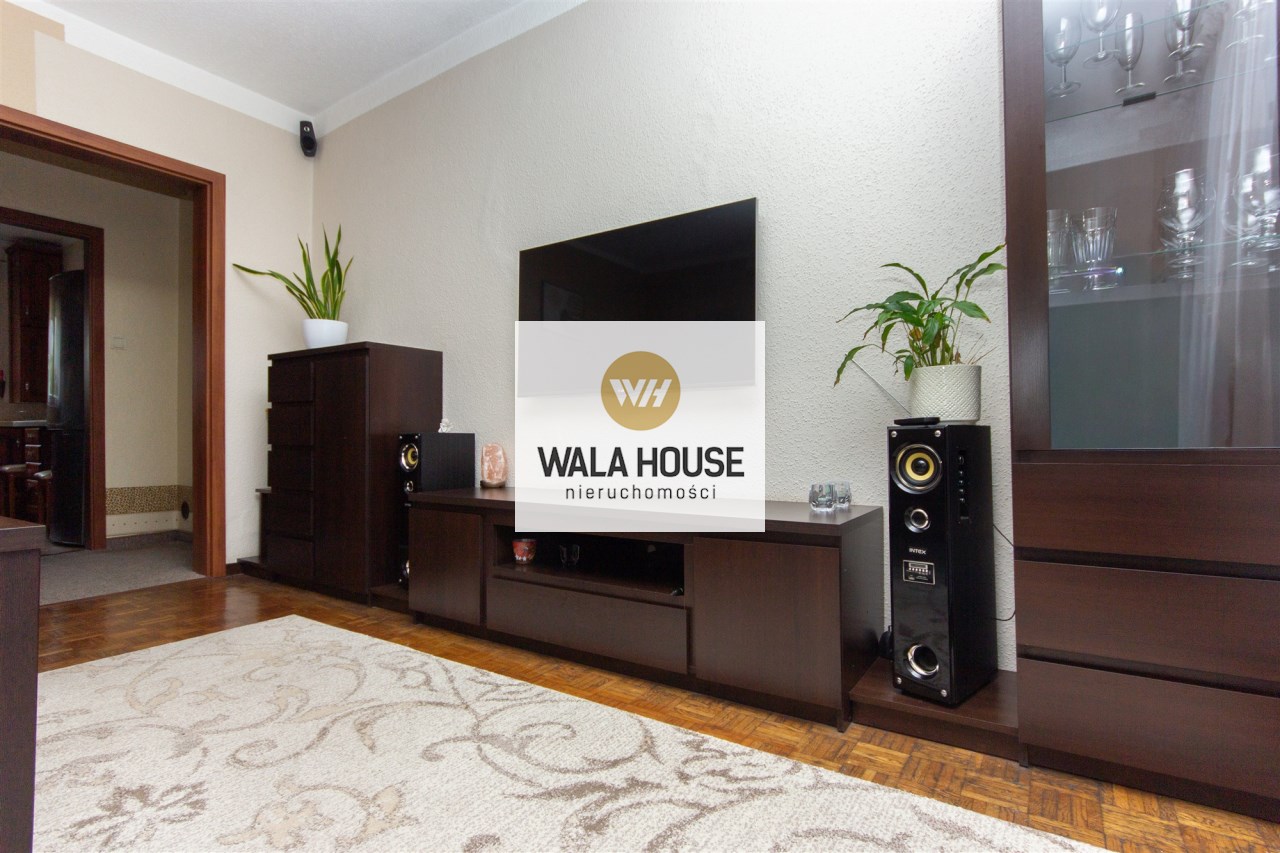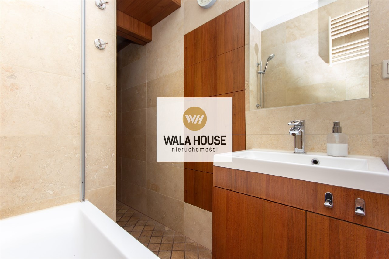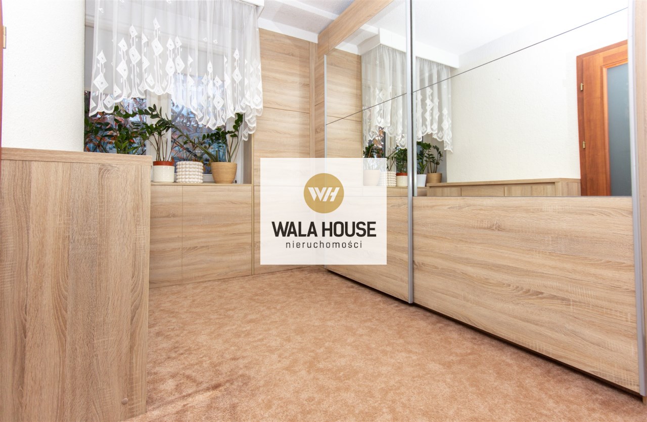 Mieszkanie składa się z: przestronnego hallu, trzech pokoi (w tym salonu przejściowego) oddzielnej kuchni w eleganckiej, drewnianej zabudowie, łazienki z wanną i WC oraz balkonu. Wnętrze urządzone zostało z dbałością o detale – drewniane podłogi, trawertyn w kuchni i wysokiej jakości meble tworzą przytulny i elegancki klimat.