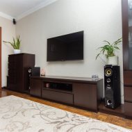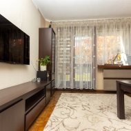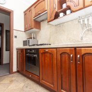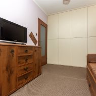 Kuchnia w pełni wyposażona: zmywarka, piekarnik, płyta gazowa, lodówka. W łazience znajduje się pralka. W salonie – duży narożnik i telewizor. Niewątpliwym atutem mieszkania jest sporo miejsca do przechowywania – praktyczne szafy i zabudowy meblowe.
