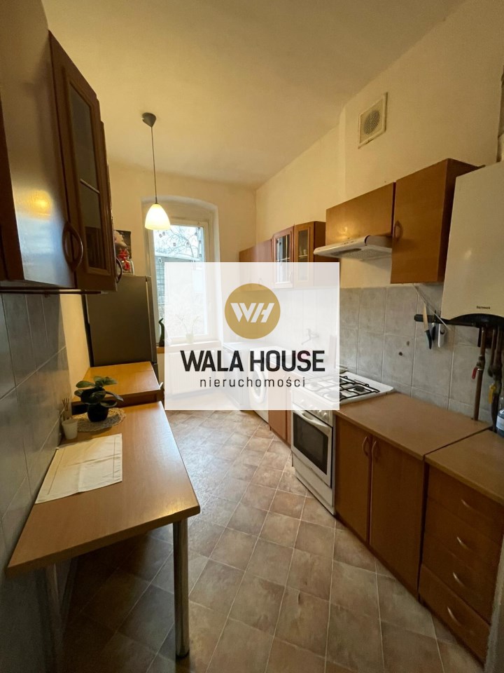 Duża oddzielna kuchnia z oknem. Ogrzewanie mieszkania i wody realizowane dwuobiegowym piecem gazowym.