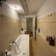 Łazienka wraz z toaletą, wyposażona w wannę.