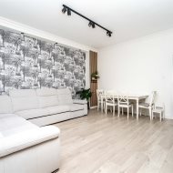 Mieszkanie wykończone w wysokim standardzie z zachowaniem klimatu oraz stylu właściwego dla wnętrz w kamienicach.