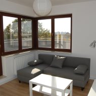 Salon połączony aneksem z kuchnią, dwie sypialnie, łazienka z natryskiem .