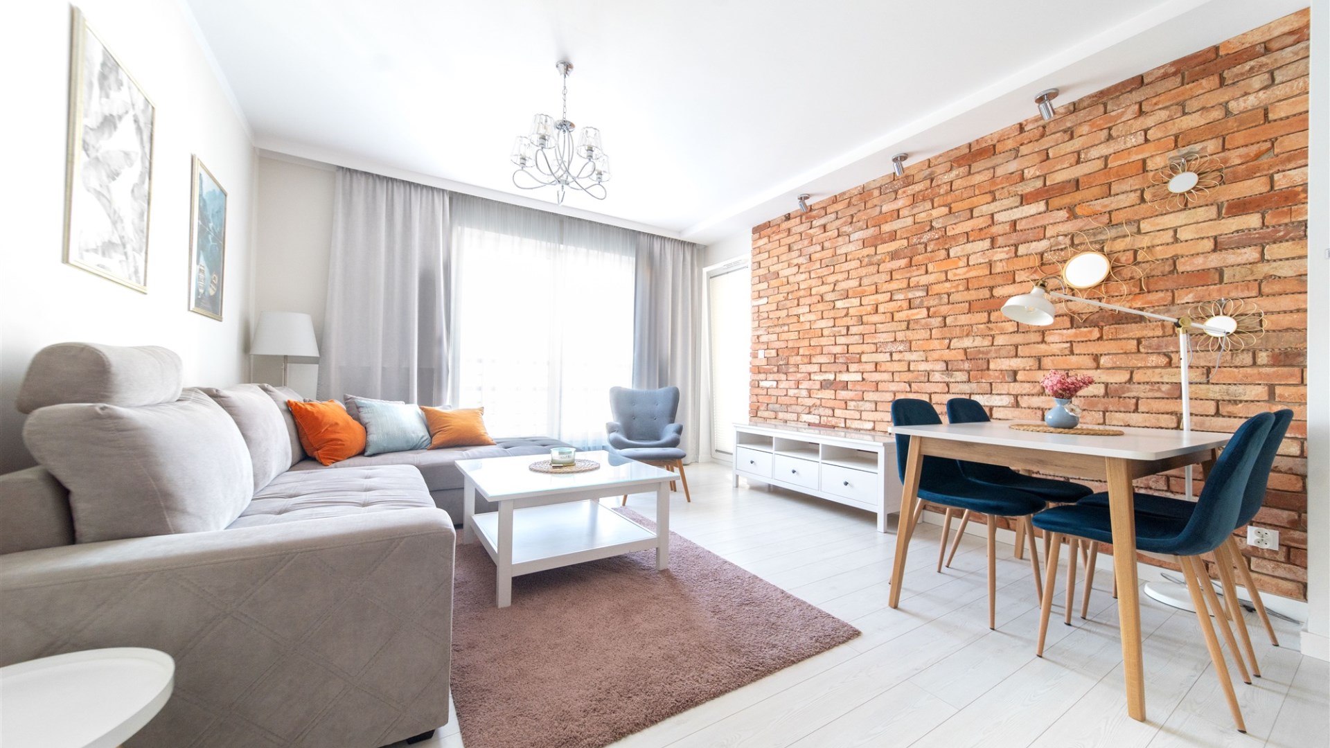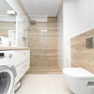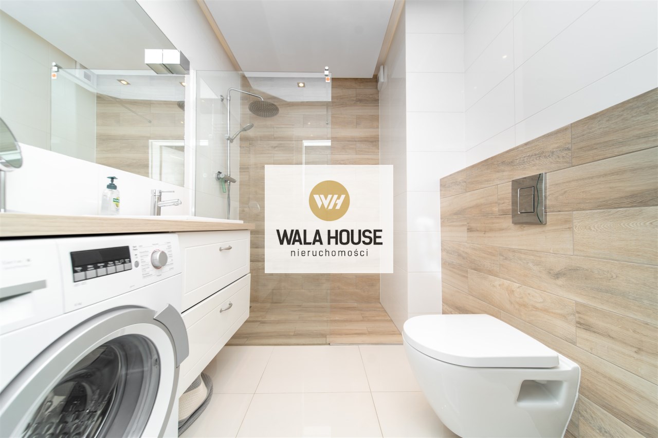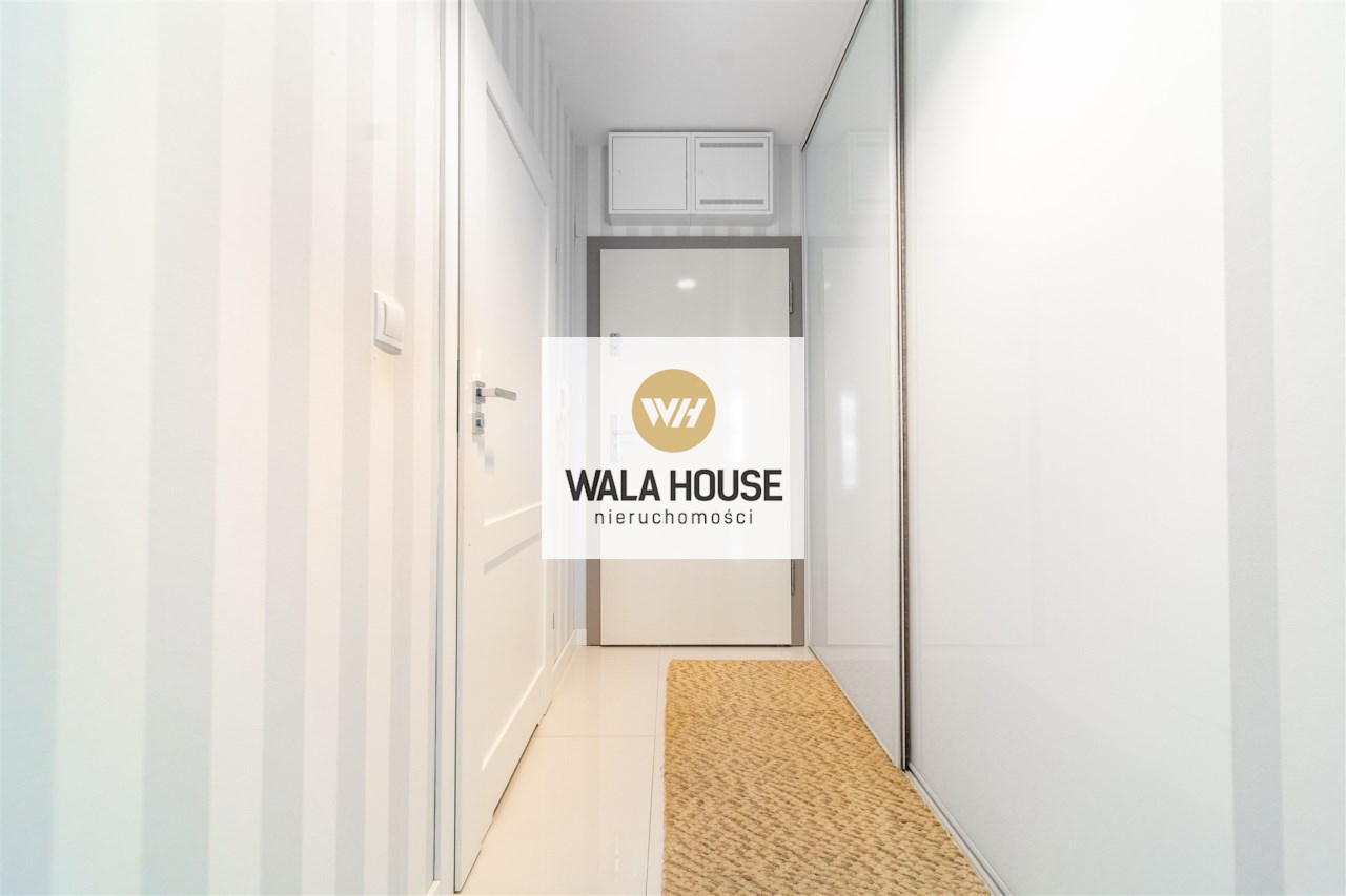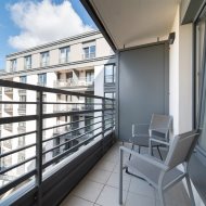 A luxurious apartment, definitely very high standard. Fully furnished and equipped with electronics and household appliances. In the living room there is a couch, a table, utility furniture and a TV set as well as balcony acces both from the living room and bedroom. Kitchen equipped with high-class household appliances (fridge freezer, induction hob, dishwasher, extractor hood, oven, microwave). The bedroom has a large double bed, utility furniture and a built-in wardrobe. There is also an exit to the terrace from the bedroom. Bathroom has a large shower.