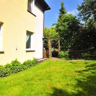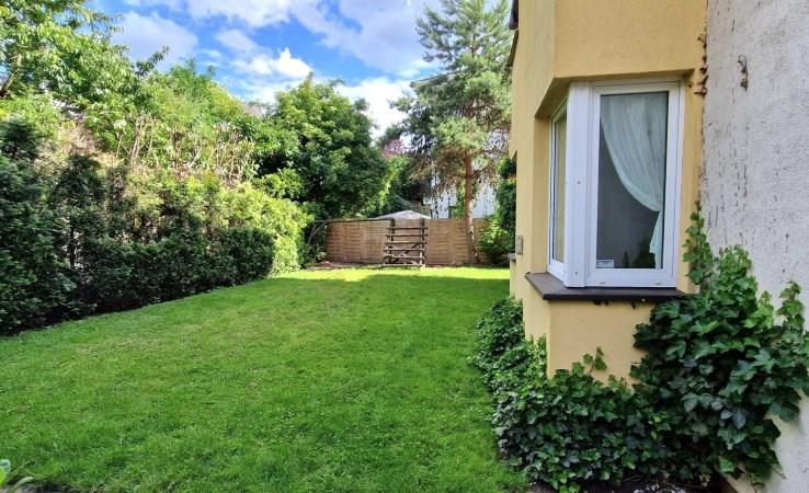 Trawnik, huśtawki dla 2x dzieci, liczne nasadzenia roślin, krzewy i drzewa owocowe, żywopłot, mini ogródek warzywny. Całość w pełni zagospodarowane. Ponadto w ogrodzie drewutnia z oświetleniem z przeznaczeniem na rowery, kosiarkę do trawy i grilla.