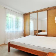 - Sypialnia (18m2) od strony północnej, od strony wejścia do mieszkania. Na podłodze wykładzina podłogowa. Biurko. Podłączenie do Internetu. Duża szafa typu Comandor z drzwiami suwanymi (4. częściowa) oraz oświetleniem od góry. Fronty szafy - ratan i duże tafle lustrzane.