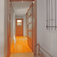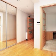 - Duży hall w środkowej części mieszkania i wejście do osobnej garderoby. W garderobie szafy i rellingi z wieszakami.