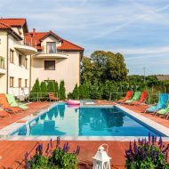 Obiekt oferuje 17 klimatyzowanych pokoi 2-, 3- i 4-osobowych, każdy z prywatną łazienką, telewizorem oraz dostępem do internetu. Dodatkowo do dyspozycji gości pozostaje restauracja oraz rozbudowana strefa SPA, obejmująca siłownię, jacuzzi, grotę solną, saunę fińską i saunę Infrared.