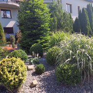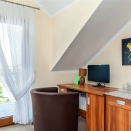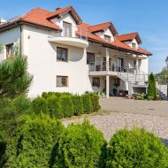 Na piętrze i poddaszu zlokalizowana jest część pensjonatowa z pokojami gościnnymi w nowoczesnym stylu. Dodatkowo, dla kadry zarządzającej przewidziano niezależny apartament o powierzchni ok. 90 m² z przestronnym salonem, kuchnią, sypialnią, łazienką, garderobą oraz tarasem.