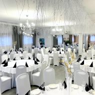 The building, constructed in 2015, has a total area of approximately 1,200 m² and consists of three floors. The ground level serves recreational and service functions, including a banquet hall (with partitioning options), sanitary facilities, laundry room, utility spaces, modern boiler room, and a fully equipped professional kitchen.